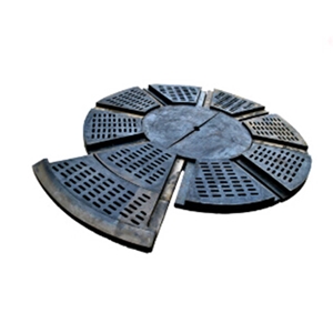 溢流球磨機端襯板設(shè)計為兩段分割的設(shè)計結(jié)構(gòu)。受球磨機材料高度的影響,球磨機端襯板的強磨損帶一般位于內(nèi)圈端襯板的中下部和外圈端襯板。內(nèi)圈端襯板的上部基本上沒有磨損。兩段分割的設(shè)計結(jié)構(gòu)迫使內(nèi)圈端襯板在下部磨損后報廢更換,導(dǎo)致襯板使用成本增加。當(dāng)球磨機端襯板采用三段分割的設(shè)計結(jié)構(gòu)時,只需根據(jù)需要更換內(nèi)圈襯板的中下部和外圈端襯板襯板的上部可以長時間使用,無需更換。